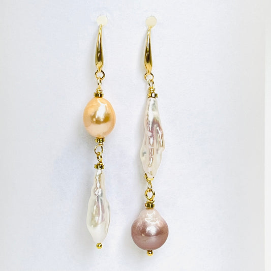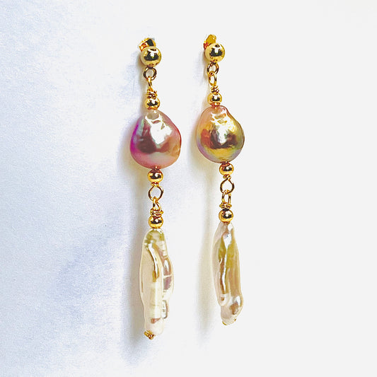 Gold Filled Edison and Biwa Pearls Earrings
