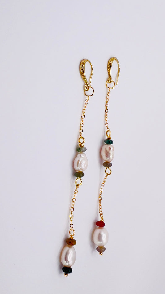 Gold-Filled Baroque Pearl Long Earrings