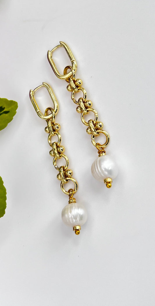 Gold Filled Chunky Earrings with Baroque 8mm Pearl