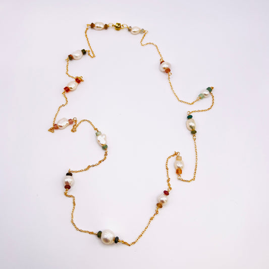 Gold Filled Baroque Pearls and Gemstone Rondelle