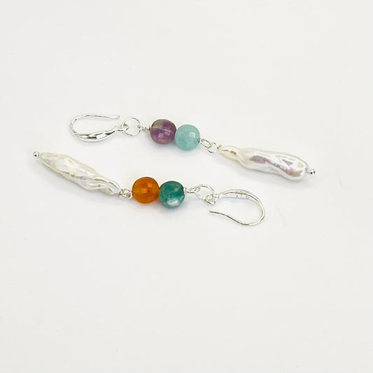 Elegant Gold-Filled Earrings with Baroque Pearls & Aquamarine Jade