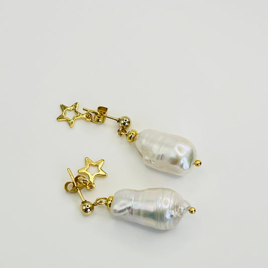 Rare 28mm White Baroque Pearls Gold Filled Studs | Handcrafted Elegance