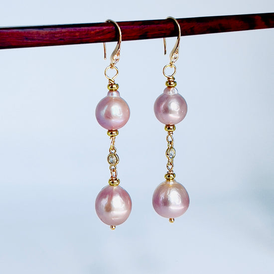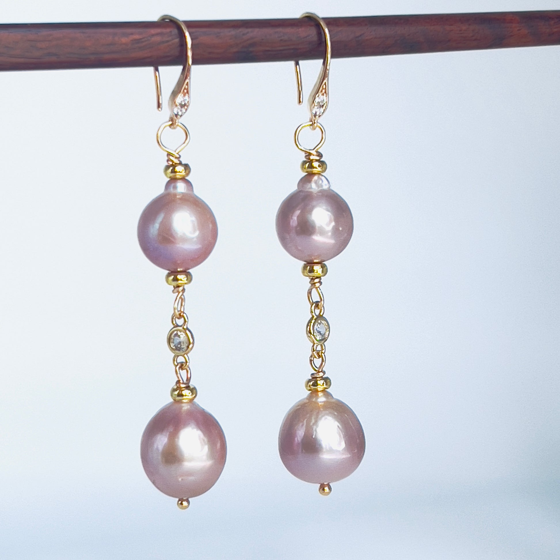 Double Baroque Pearl Drop Earrings – Pink Elegance
