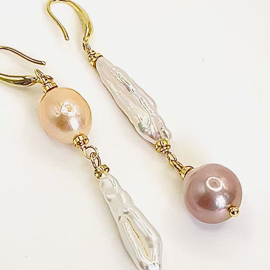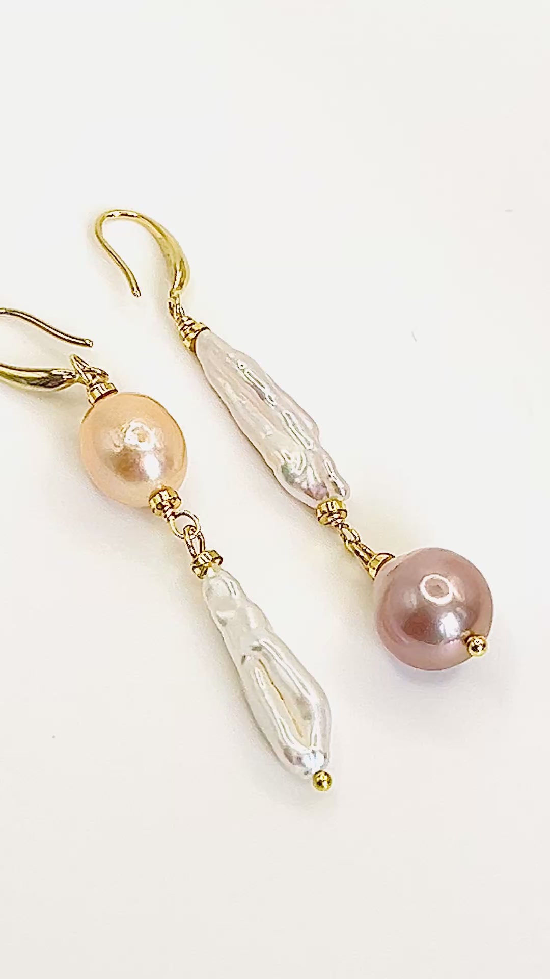 Gold-Filled Earrings with 12mm Edison & Biwa Pearls