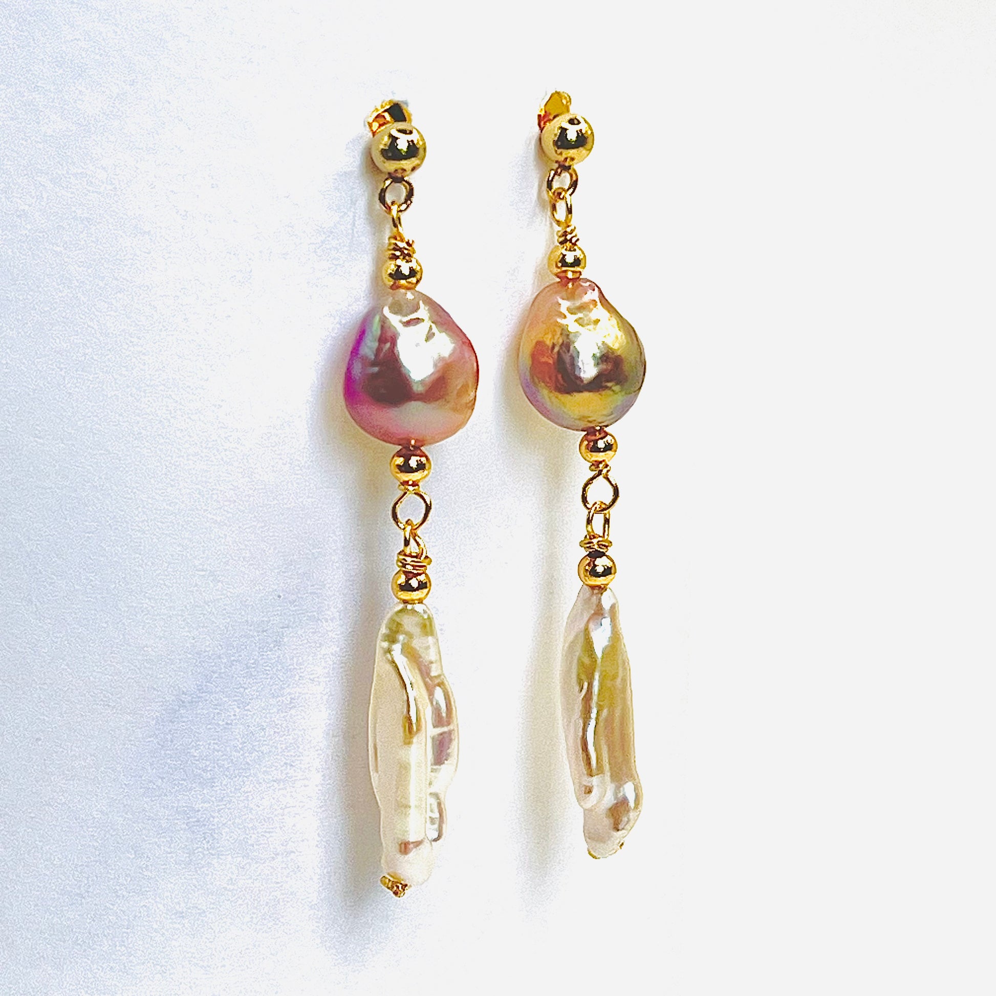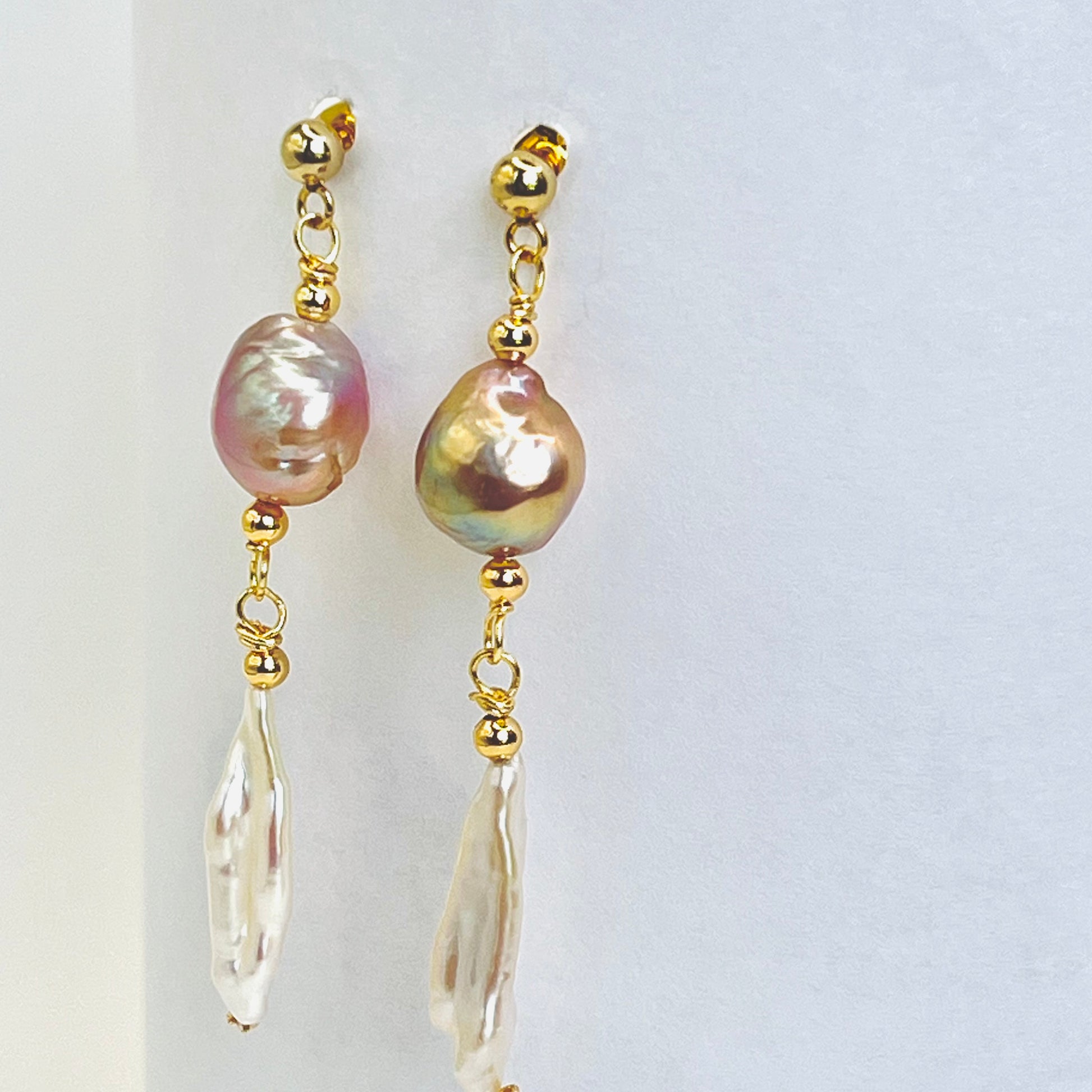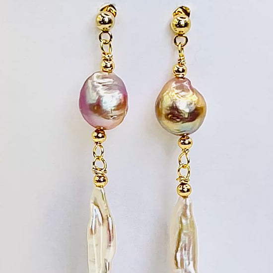 Gold Filled Edison and Biwa Pearls Earrings